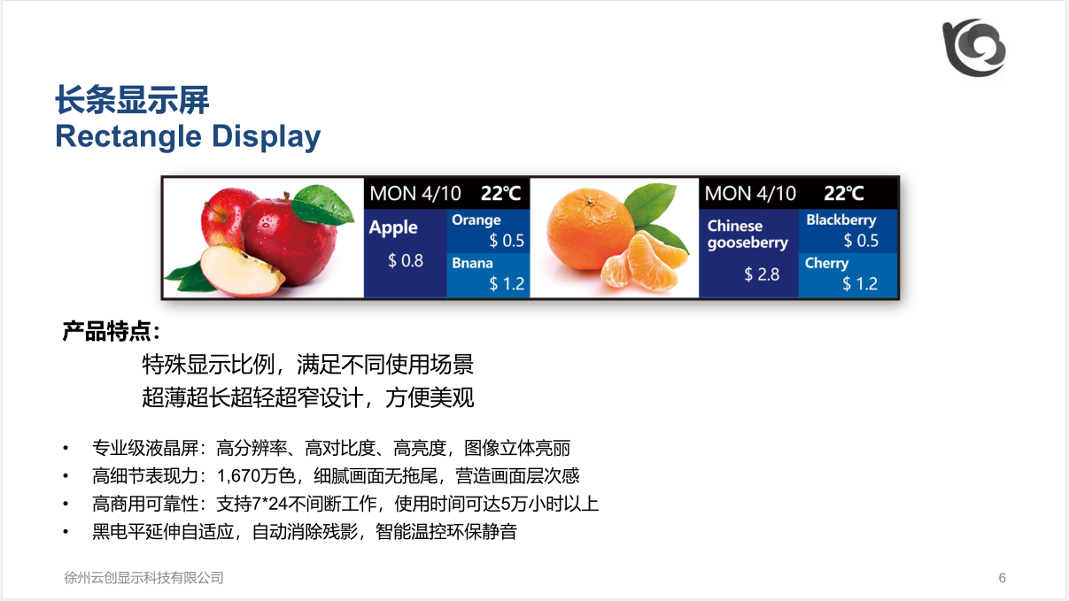 产品特点:特殊显示比例,满足不同使用场景超薄超长超轻超窄设计,方便美观• 专业级液晶屏:高分辨率、高对比度、高亮度,图像立体亮丽• 高细节表现力:1,670万色,细腻画面无拖尾,营造画面层次感• 高商用可靠性:支持7*24不间断工作,使用时间可达5万小时以上• 黑电平延伸自适应,自动消除残影,智能温控环保静音